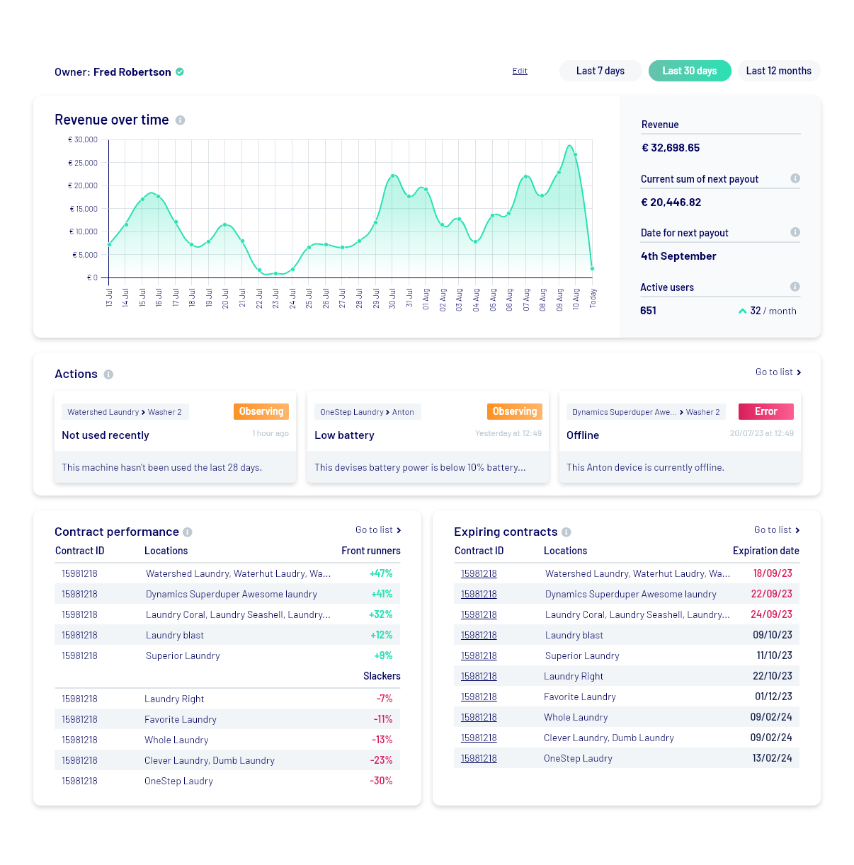 Waste no more time on bookkeeping, collecting coins, replacing laundry cards, or struggling with refunds. With Airwallet most parts are automated and can be done directly from the sofa via your Dashboard.